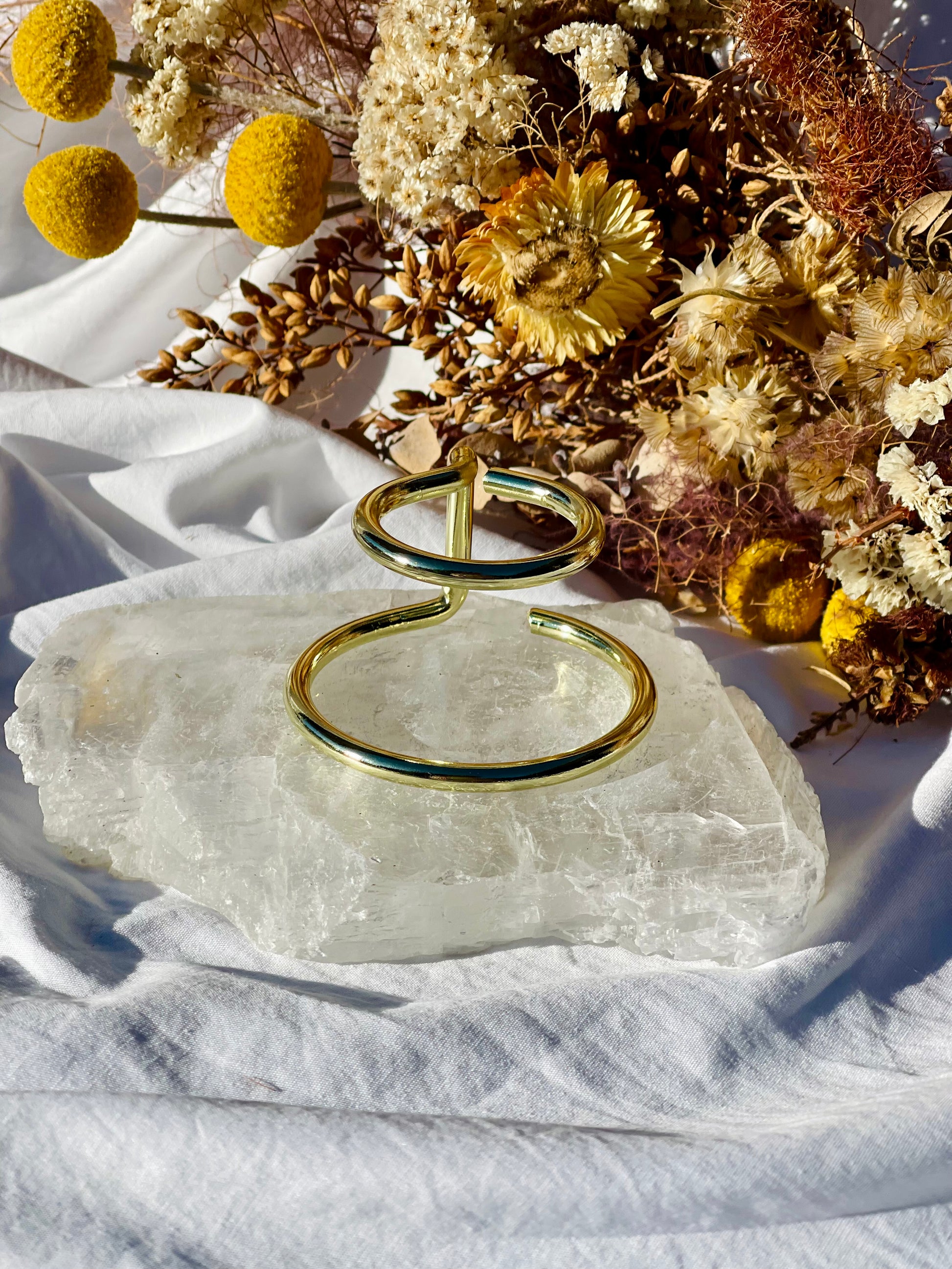 Transform your crystal display with a stunning sphere stand in gold. Show off your collection in style and elevate any room with this beautiful and practical addition.