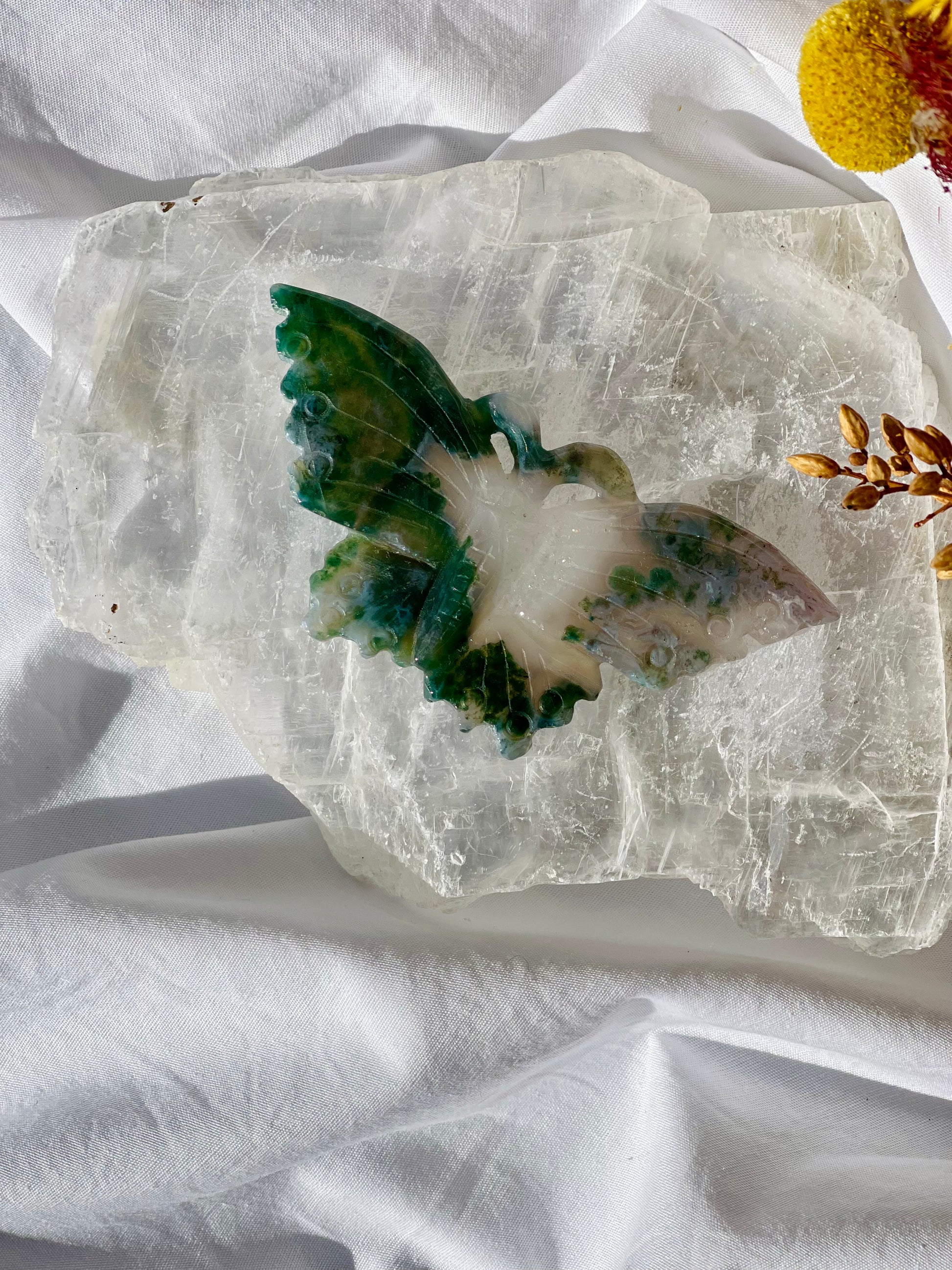 Green Moss Agate Butterfly #1