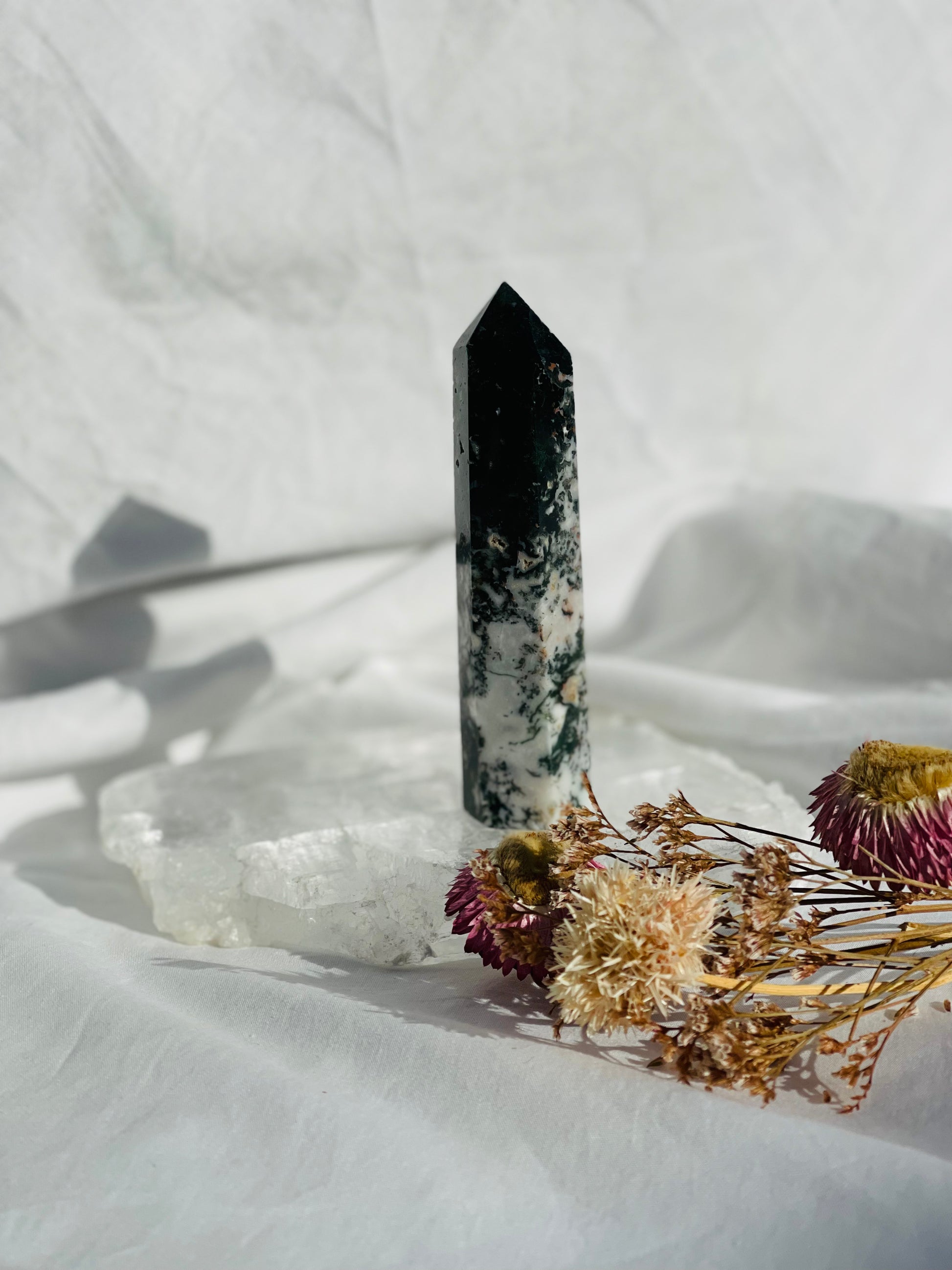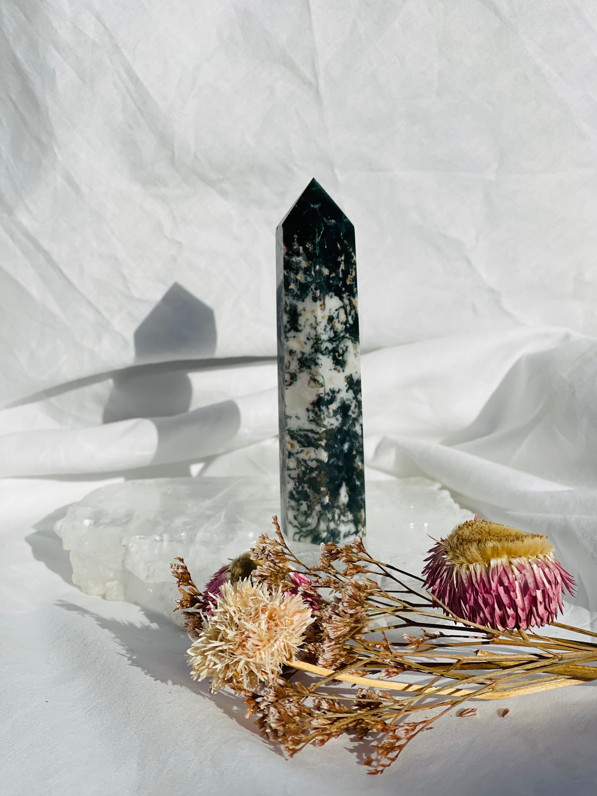 Green Moss Agate has a strong connection to nature and brings with it a piece of her wisdom. It will give you a keen perception and sharper focus to make sense of the world around you.