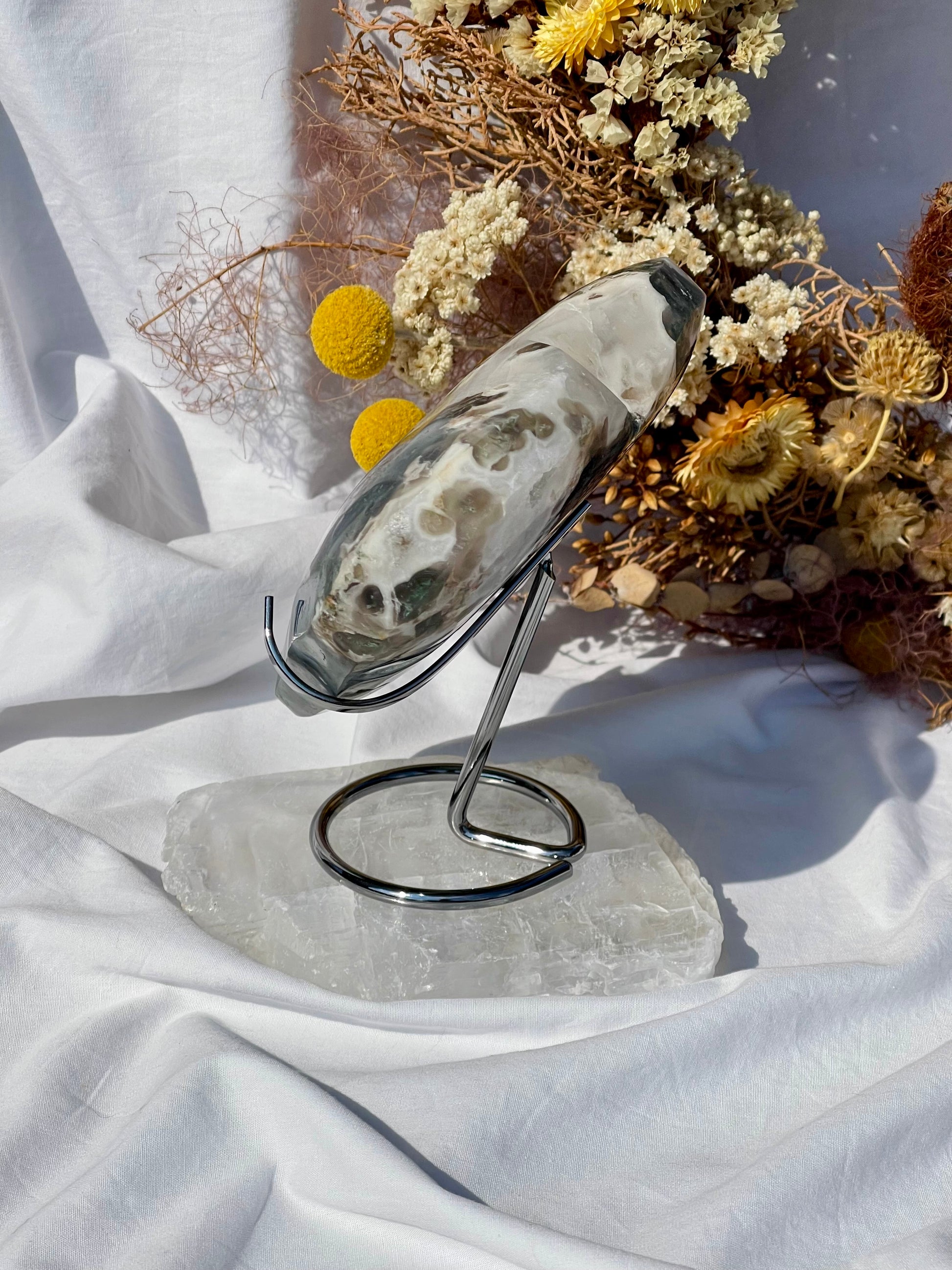 Green Moss Agate has a strong connection to nature and brings with it a piece of her wisdom. It will give you a keen perception and sharper focus to make sense of the world around you.