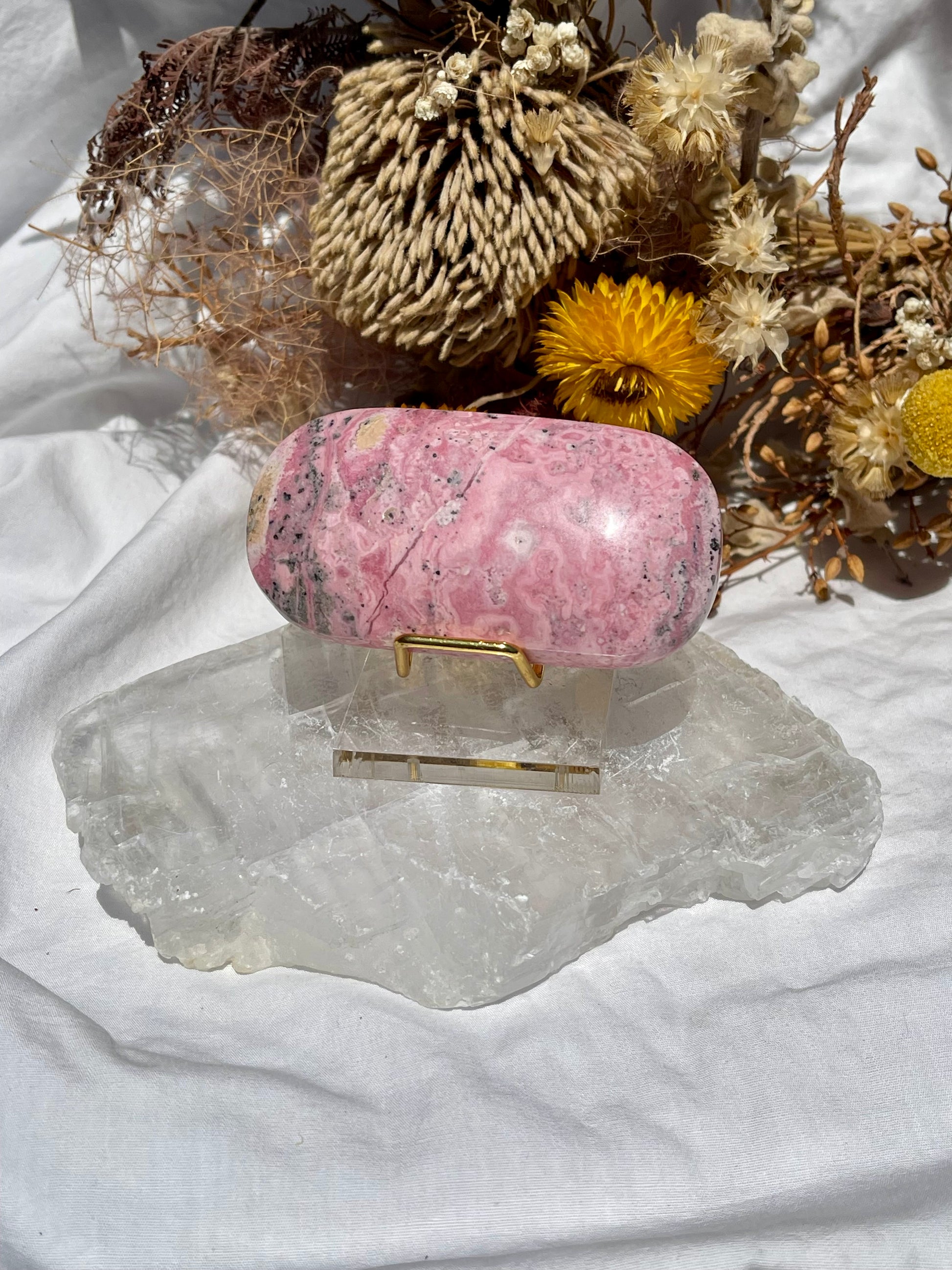 A stone of compassion and understanding Rhodonite will ease stress, anxiety and feelings of anger or frustration. It is said to bring emotional balance and help you to love you. A powerful aid in self-love and self acceptance.