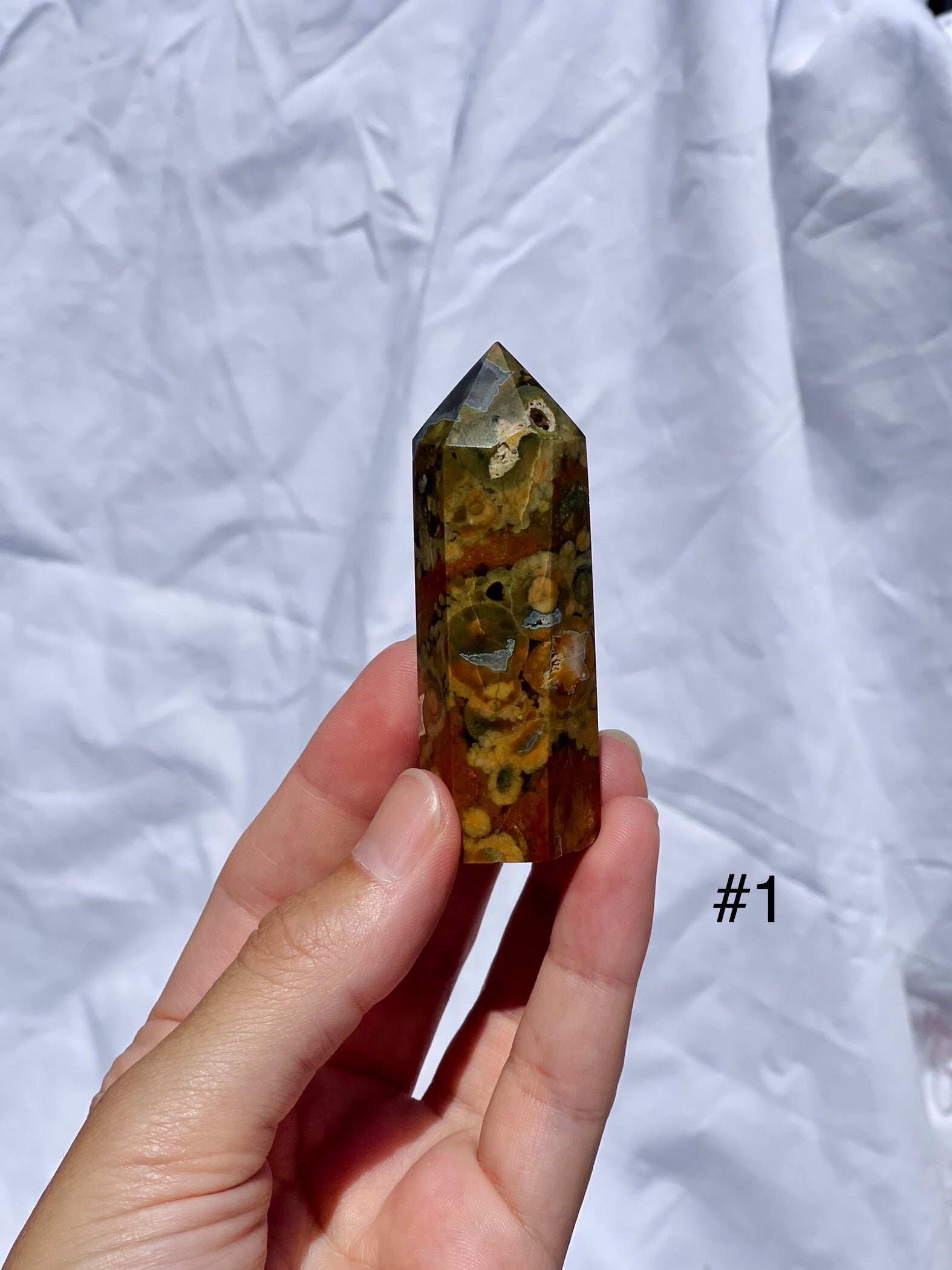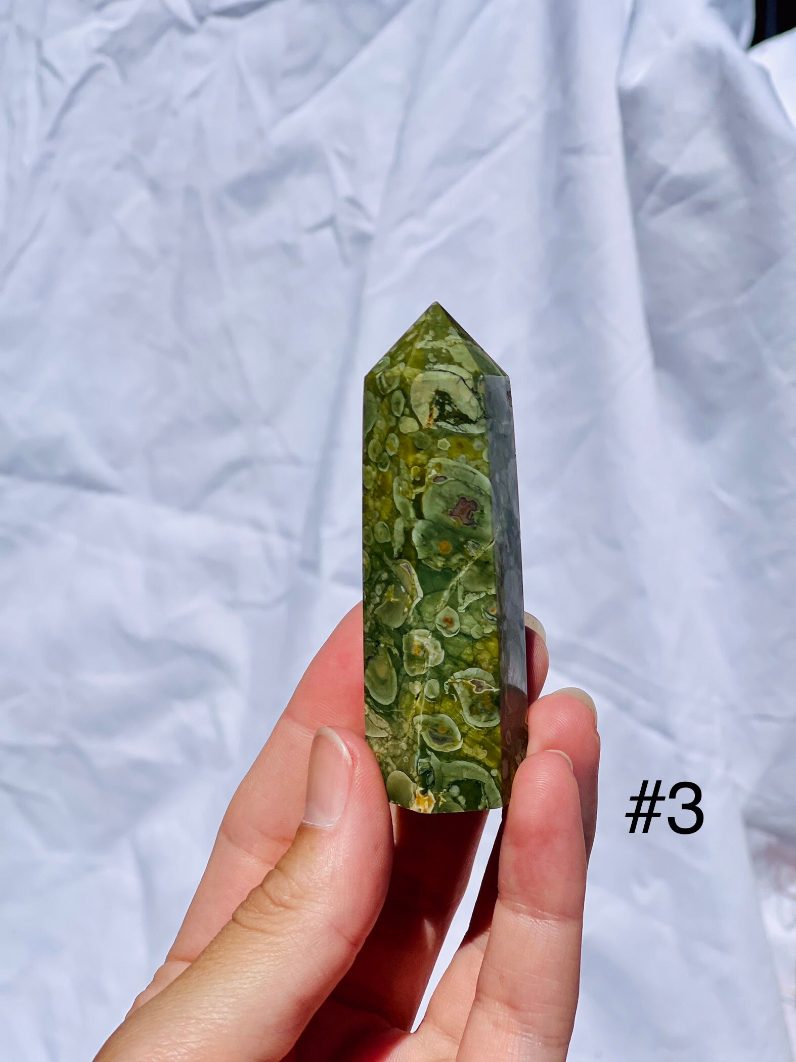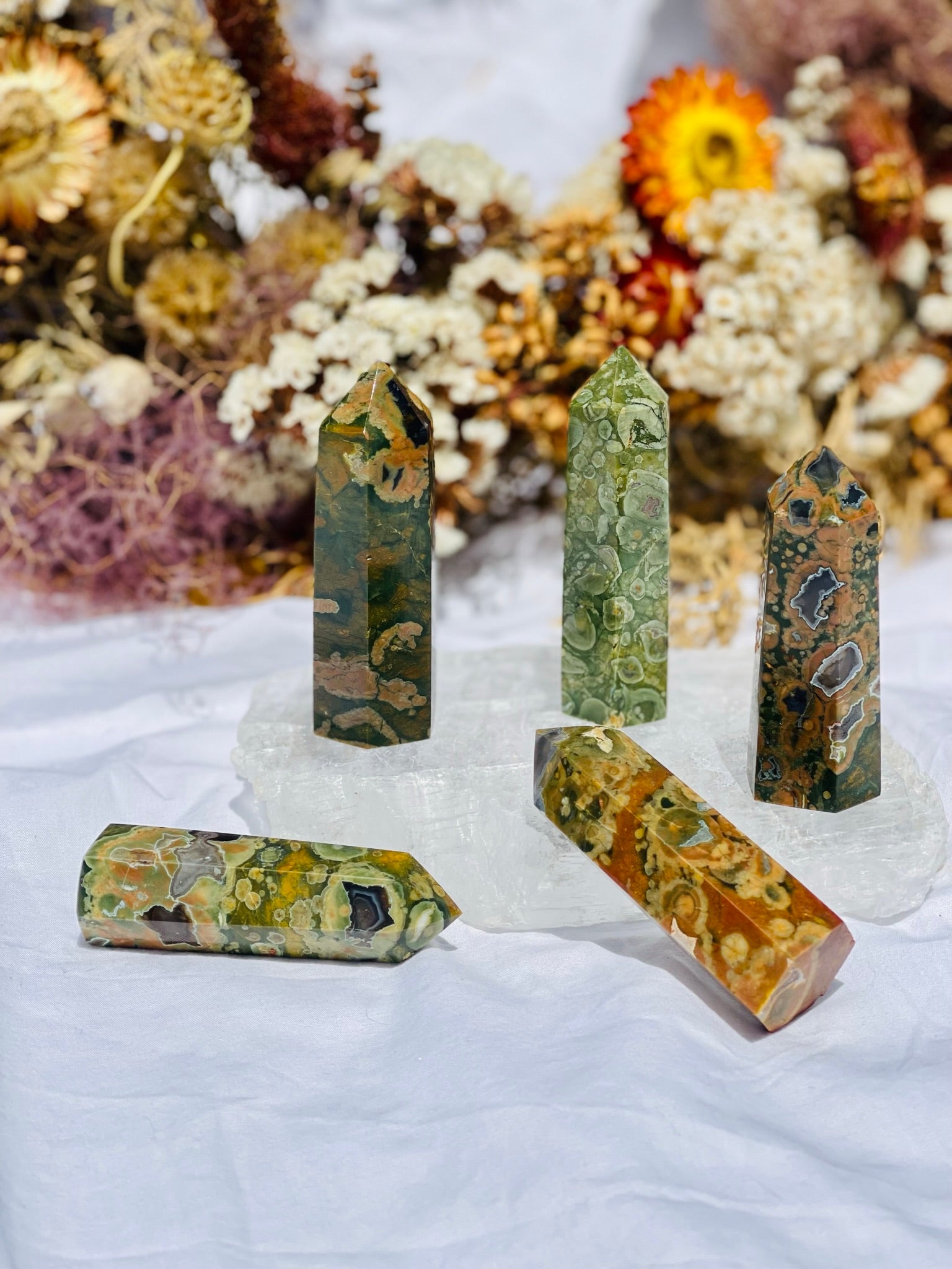 A stone extremely close to mother earth Rain Forest Jasper brings with it her wisdom and strength.